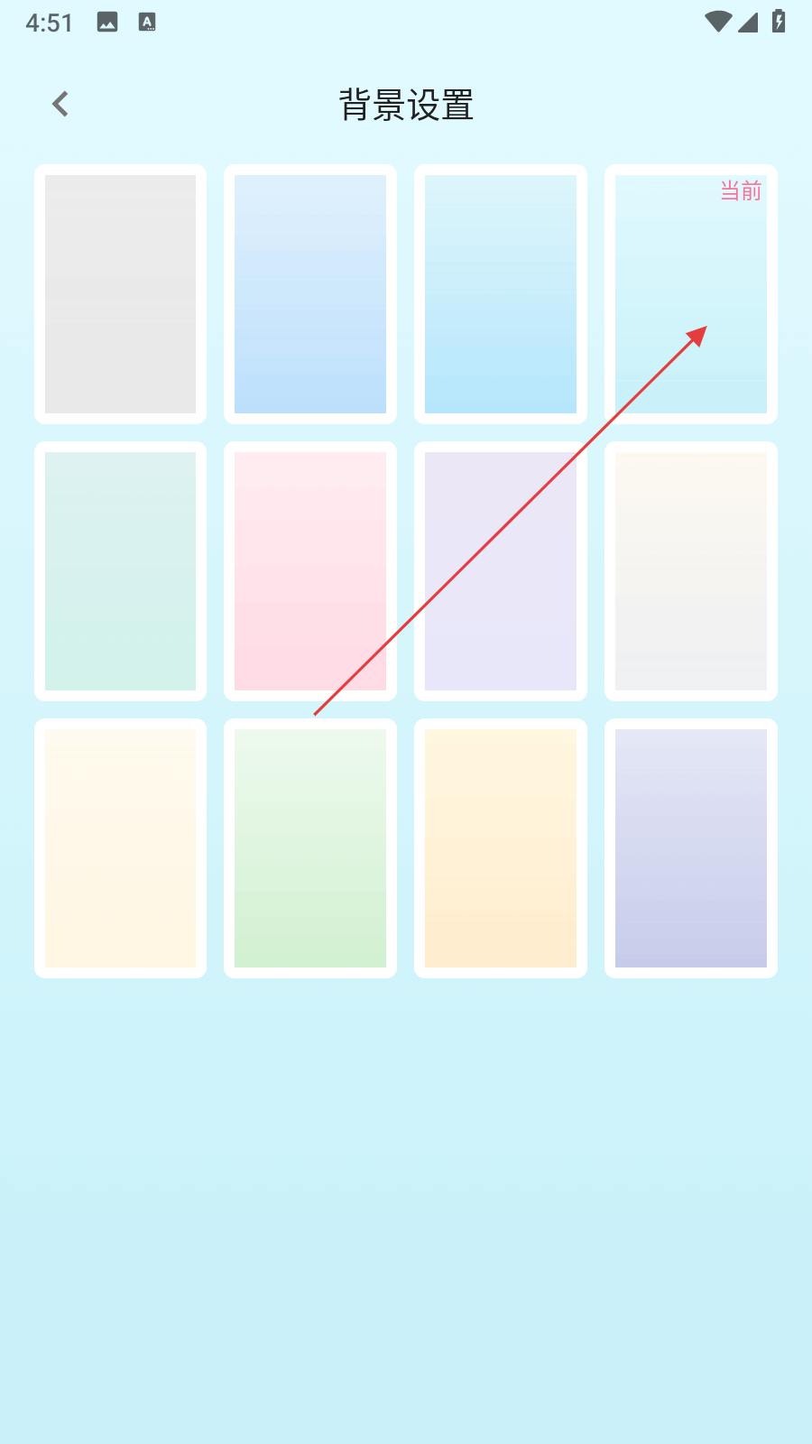 3、在背景設(shè)置界面,會展示多種顏色的背景選項(xiàng),點(diǎn)擊你想要更換的背景樣式。
