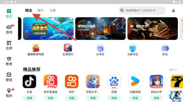 2、進(jìn)入樂(lè)商店首頁(yè),精選板塊通過(guò)輪播圖、推薦列表展示熱門(mén)應(yīng)用與精品內(nèi)容,直觀呈現(xiàn)當(dāng)下流行資源,無(wú)需搜索即可發(fā)現(xiàn)優(yōu)質(zhì)應(yīng)用。