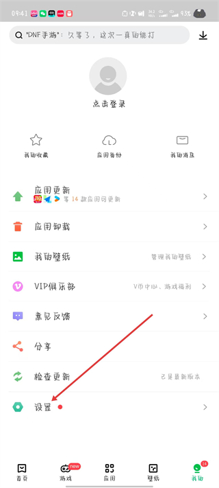 2、進(jìn)入我的頁(yè)面之后,找到并點(diǎn)擊設(shè)置選項(xiàng)。