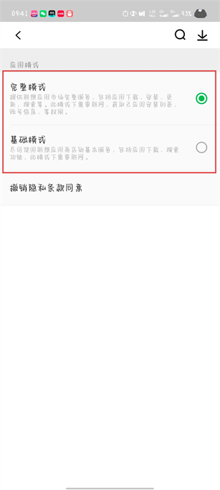 4、在隱私與模式頁(yè)面,選擇想要的應(yīng)用模式即可。