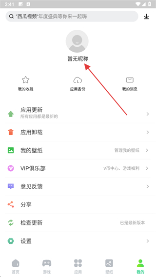 2、進(jìn)入個(gè)人頁(yè)面之后,點(diǎn)擊暫無(wú)昵稱(chēng)區(qū)域。