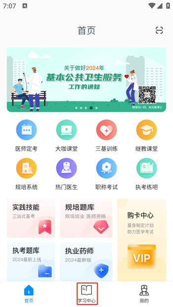1、這是一個匯聚著海量關(guān)于醫(yī)學(xué)當(dāng)面的學(xué)習(xí)與培訓(xùn)資源,想要知道如何申請學(xué)分的用戶,在軟件的首頁里面點擊最下方中間的【學(xué)習(xí)中心】;