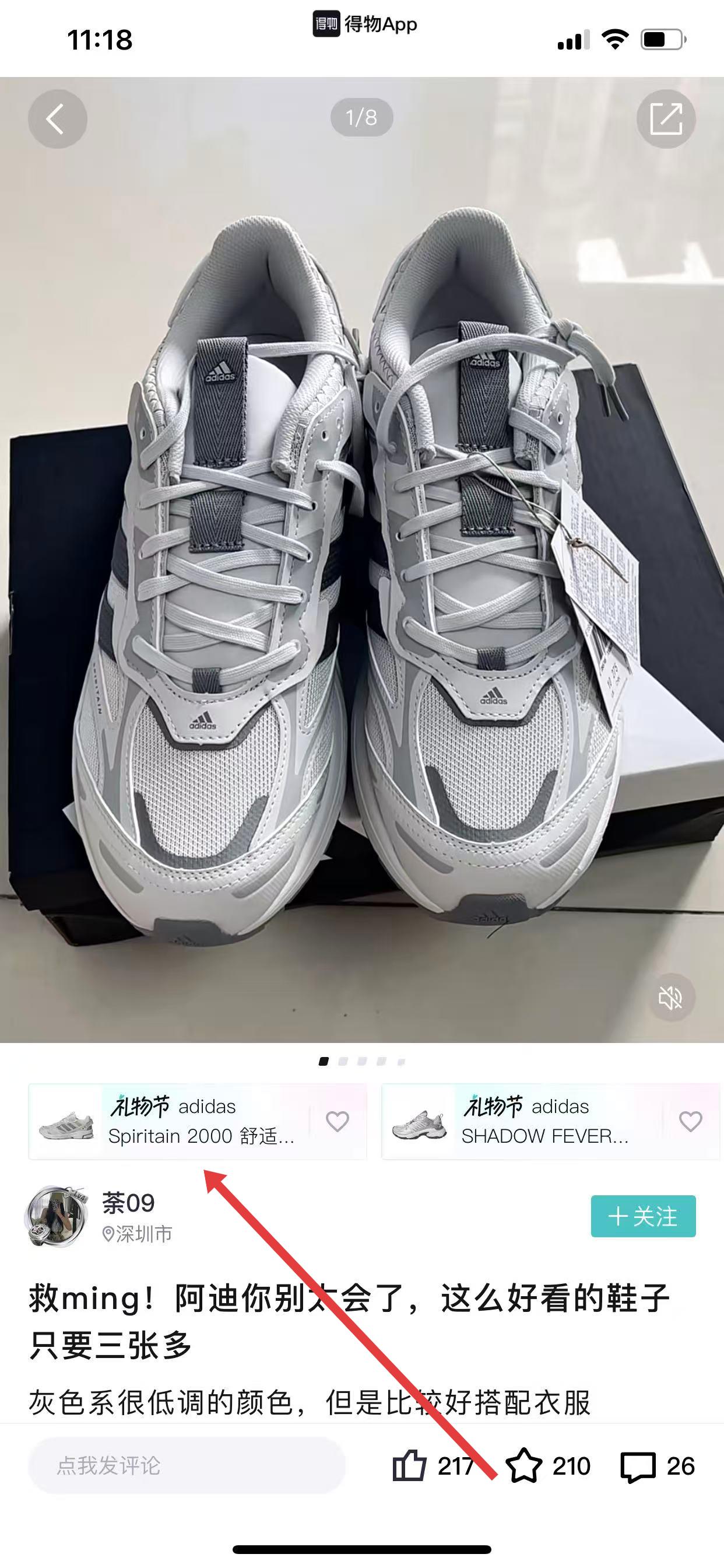 1、打開得物APP,找到商品下方的商品名稱區(qū)域,進(jìn)入商品詳情頁。
