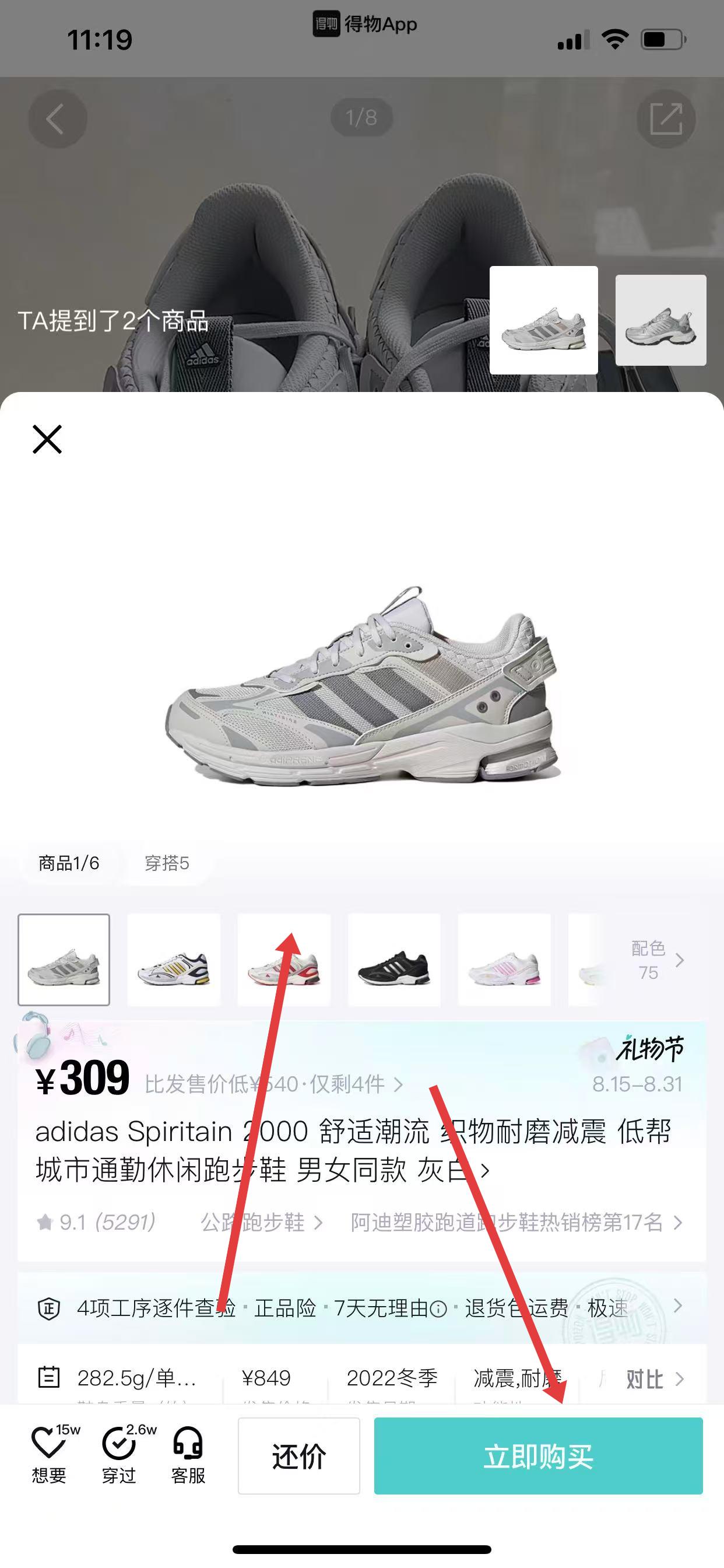 2、在商品詳情頁中,選擇喜歡的商品樣式,點擊立即購買按鈕。