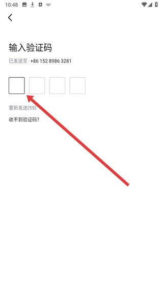 4、跳轉(zhuǎn)到“輸入驗證碼”頁面,將收到的驗證碼依次輸入對應(yīng)方框,完成得物APP的登錄流程。