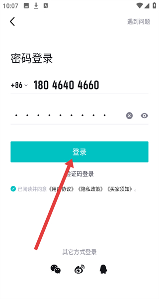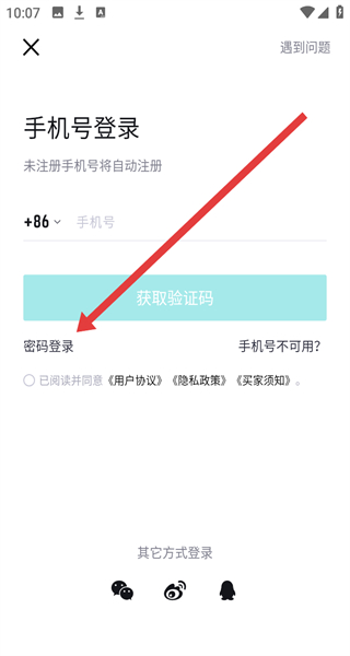 2、跳轉(zhuǎn)至手機(jī)號登錄頁面時,想要切換登錄方式,可以點擊密碼登錄按鈕進(jìn)行切換。