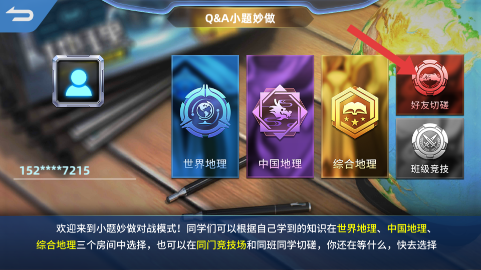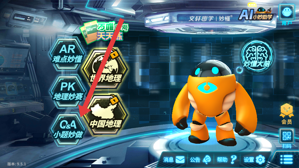 1、打開妙懂地理APP,點(diǎn)擊Q&A小題妙做,進(jìn)入對戰(zhàn)模式選擇頁面。
