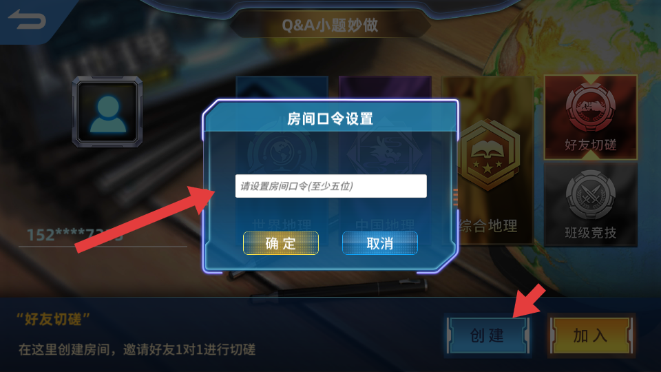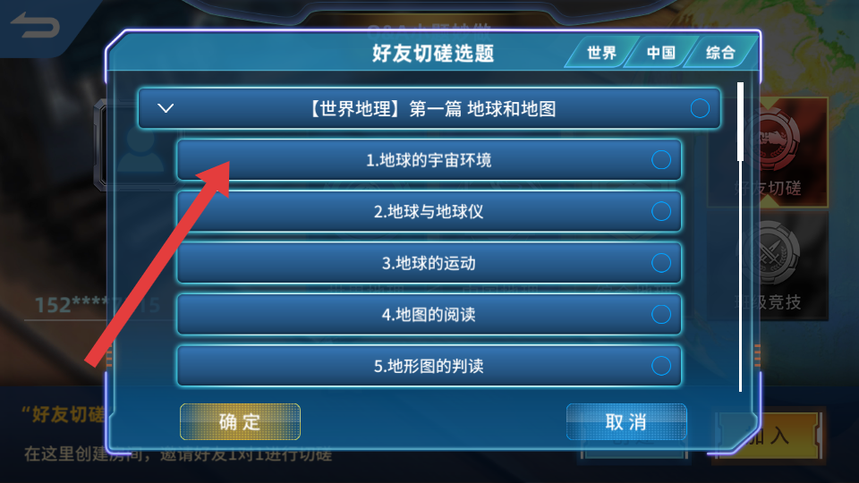 4、在界面選擇要切磋的地理知識點(diǎn),點(diǎn)擊確定,即可完成房間創(chuàng)建。