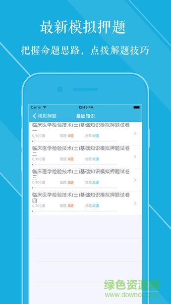 臨床醫(yī)學(xué)檢驗(yàn)技士題庫(kù)app是一款免費(fèi)的醫(yī)學(xué)考試軟件。醫(yī)學(xué)專業(yè)的學(xué)員們可以在線模擬考試、做題,內(nèi)置了海量最新的醫(yī)學(xué)考試題庫(kù)知識(shí)。提供有錯(cuò)題整理解析功能,是醫(yī)學(xué)考試復(fù)習(xí)好幫手!歡迎在綠色資源網(wǎng)下載使用。