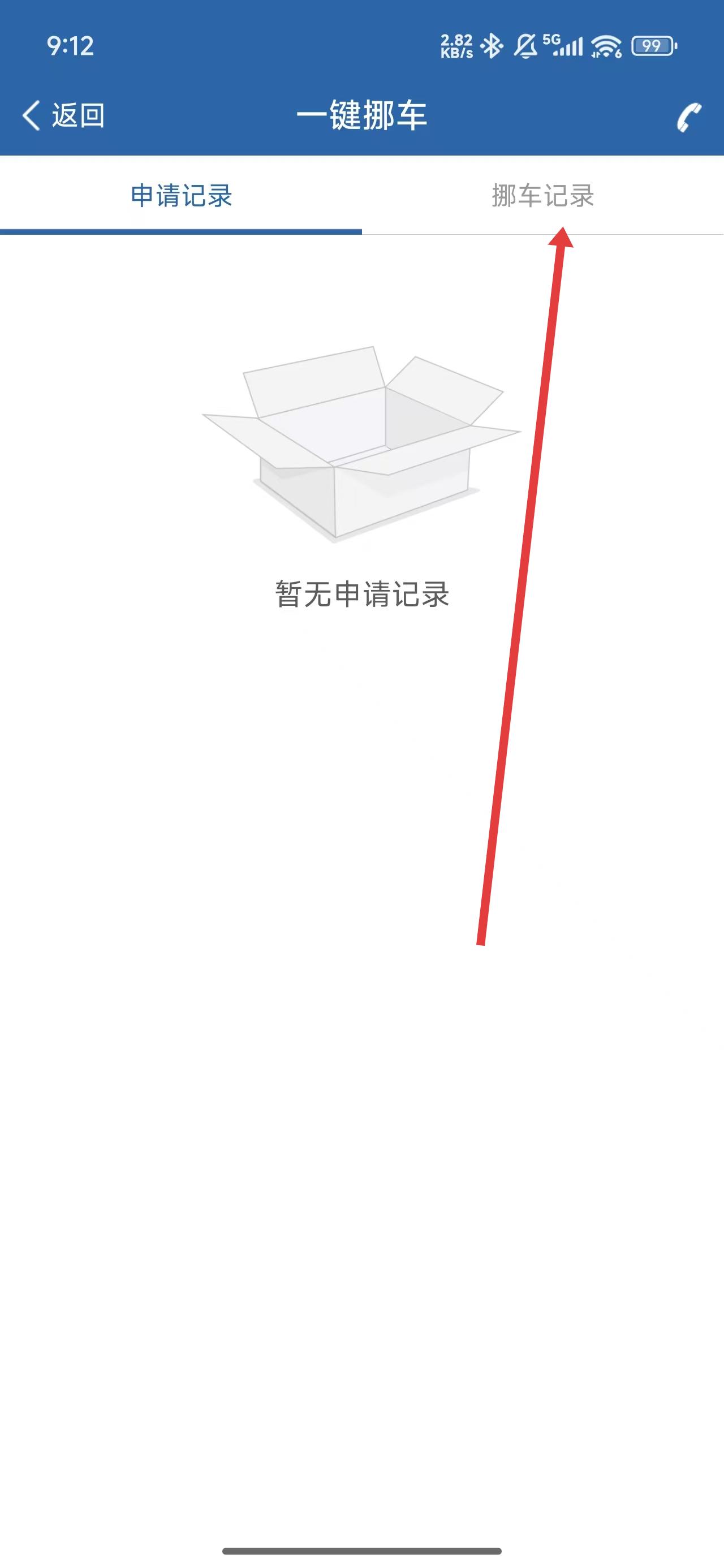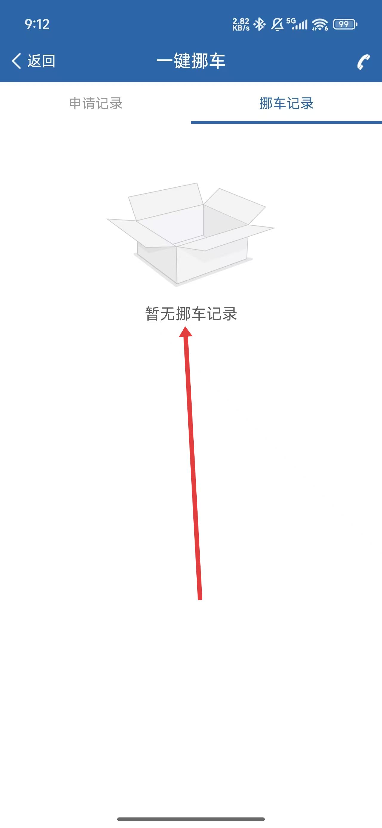 4、跳轉(zhuǎn)到挪車記錄模塊后,即可在下方查詢到當(dāng)前賬號的挪車記錄。