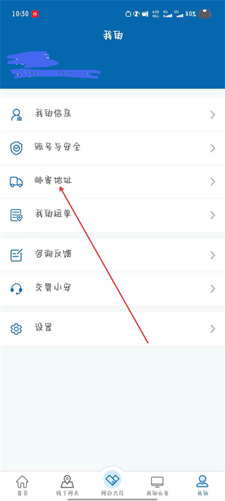 2、在我的頁面,點擊郵寄地址選項。