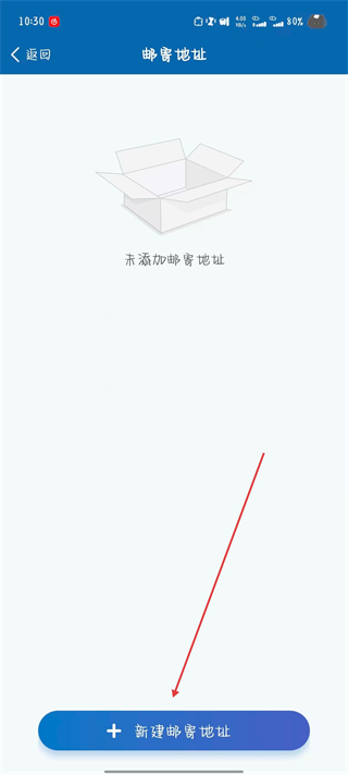 3、進(jìn)入郵寄地址頁面后,點擊新建郵寄地址。