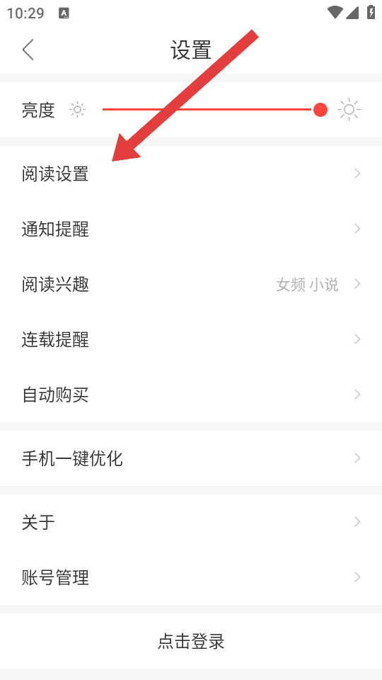 2、在設(shè)置的界面中,需要找到并點(diǎn)擊閱讀設(shè)置的選項(xiàng),進(jìn)入閱讀模式相關(guān)設(shè)置頁面。