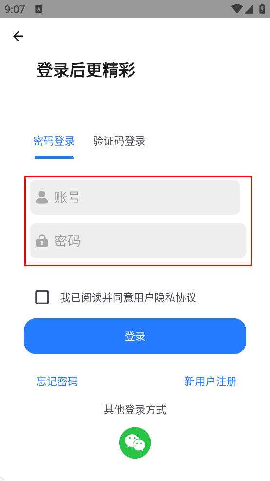 3、在登錄界面,選擇“密碼登錄”方式,在賬號輸入框中輸入賬號,在密碼輸入框中輸入密碼。