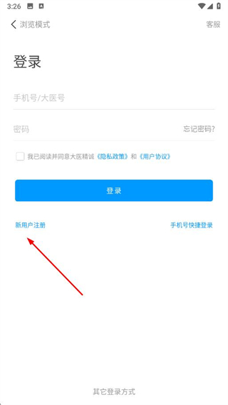 3、在登錄頁(yè)面,點(diǎn)擊新用戶注冊(cè)選項(xiàng)。