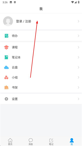 2、在我頁(yè)面中,點(diǎn)擊登錄/注冊(cè)選項(xiàng)。