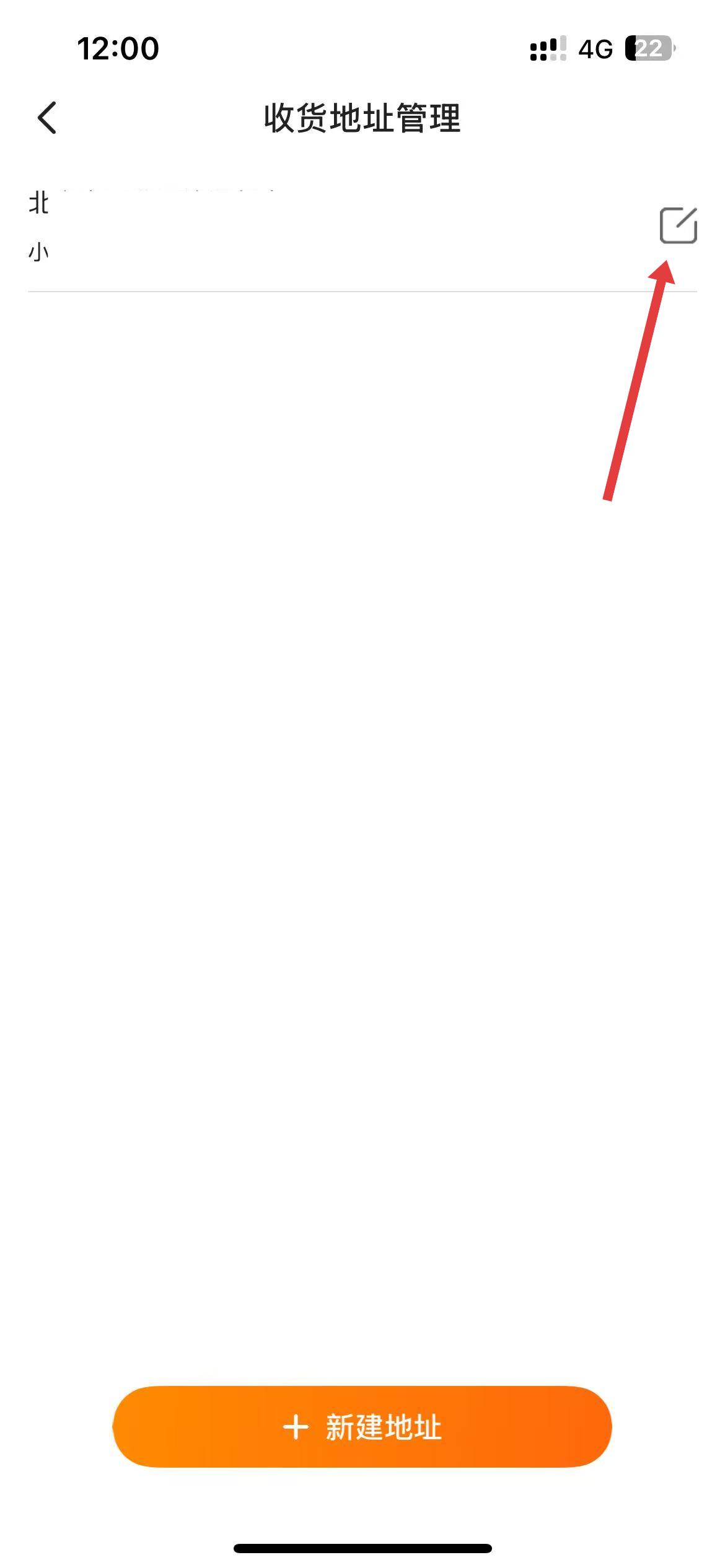 3、在收貨地址管理界面中,找到想要修改的地址,點擊其右側(cè)對應的編輯圖標修改,可點擊下方新建地址按鈕,重新添加新收貨地址。