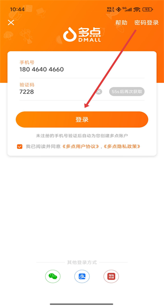 4、輸入收到的驗證碼,點擊“登錄”,完成賬號登錄操作。