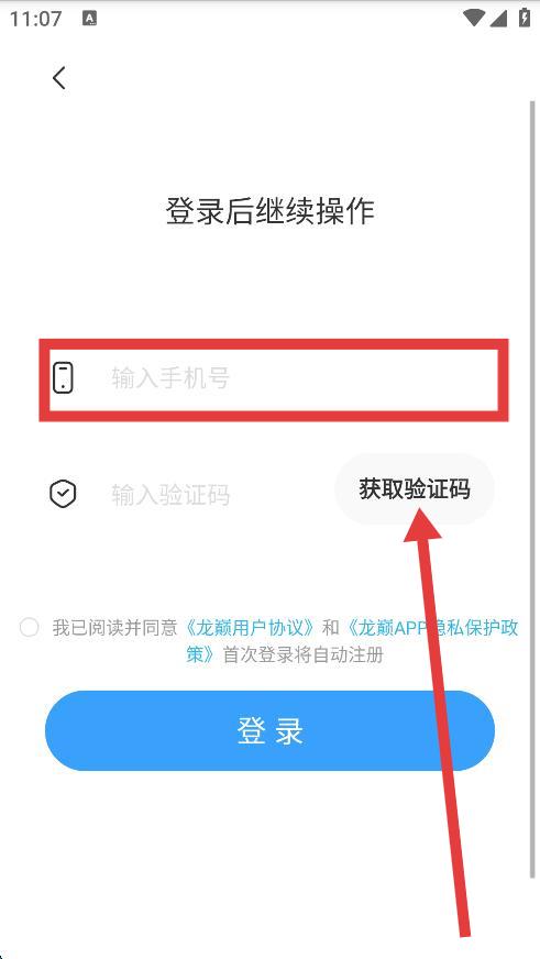 3、輸入需要登錄的手機(jī)號(hào),點(diǎn)擊獲取驗(yàn)證碼。