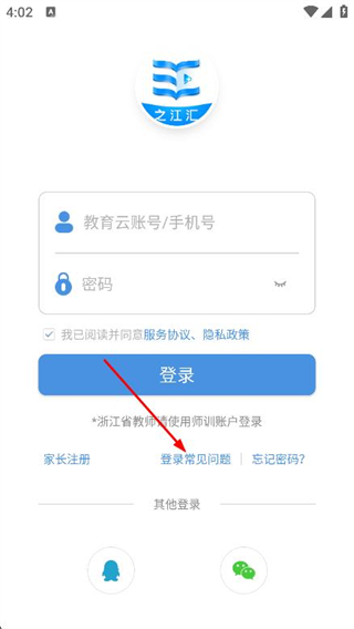 2、在登錄頁(yè)面,找到并點(diǎn)擊右下方的登錄常見問題選項(xiàng)。