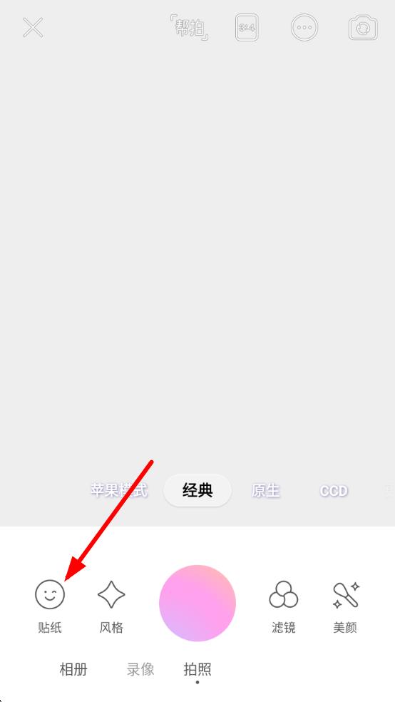 2、在拍攝界面下方,點(diǎn)擊貼紙選項(xiàng),打開(kāi)貼紙選擇菜單,以便找到時(shí)間相關(guān)貼紙。