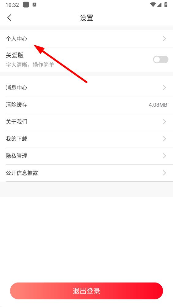 2、在設(shè)置頁面中,點擊個人中心選項,進(jìn)入個人中心界面。