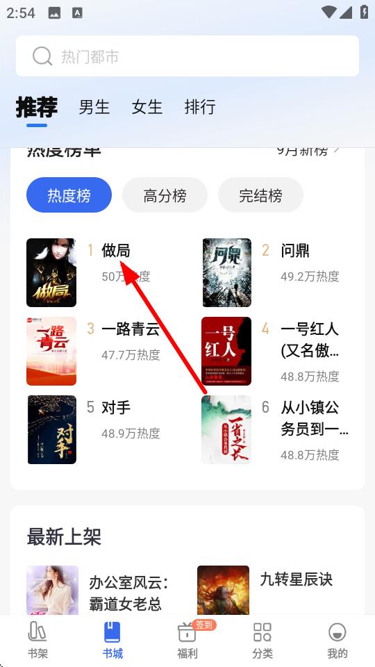 1、打開免費趣小說app,點擊底部導(dǎo)航欄中的書城,選擇一本小說,比如點擊做局。