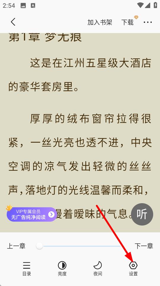 3、在小說閱讀界面中,點擊右下角的設(shè)置選項。