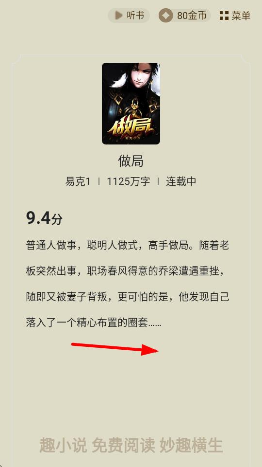 2、進(jìn)入做局小說頁面后,左滑屏幕開始閱讀小說。