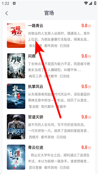 2、在官場小說列表,點擊目標(biāo)小說,進(jìn)入小說詳情界面。