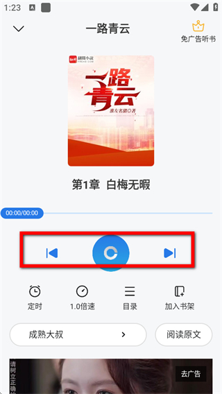 4、在聽書界面,可通過播放控制區(qū)域的按鈕,進(jìn)行聽書操作。