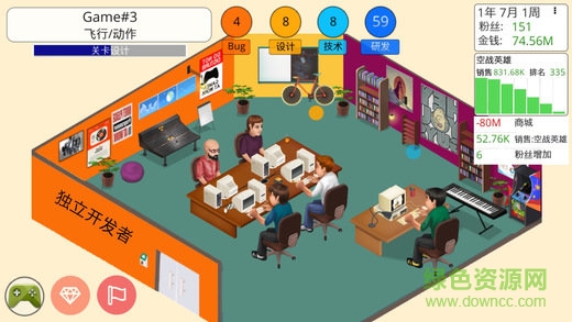 4、雇用員工,培訓(xùn)他們,研發(fā)新的游戲主題。有了經(jīng)驗(yàn)和一個(gè)好的團(tuán)隊(duì),你可以發(fā)布更大,更復(fù)雜的游戲。更大的游戲帶來了新的挑戰(zhàn)。