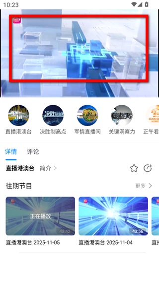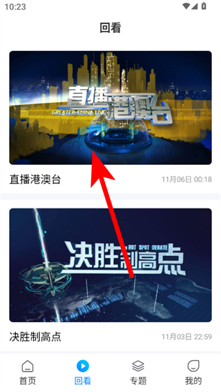 2、在回看頁面,選擇感興趣的節(jié)目,直播港澳臺,進入節(jié)目播放界面。