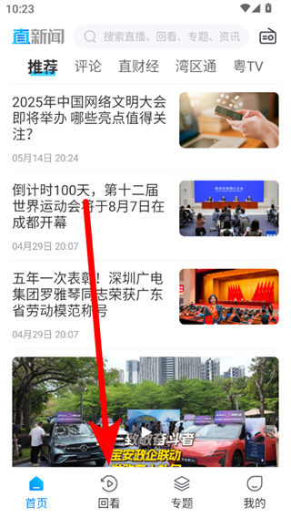 1、在直新聞APP首頁,點擊下方回看選項,進入回看頁面。