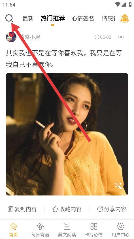 1、打開一句話心情語錄app,點擊首頁左上角的搜索圖標。