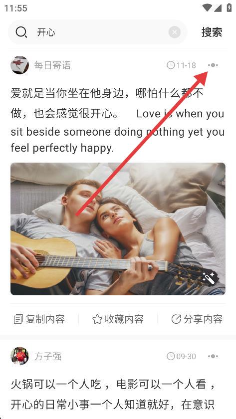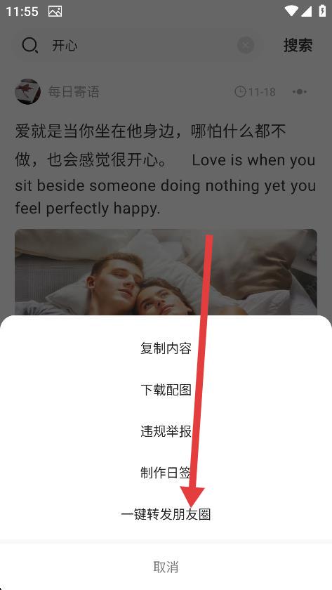 3、在搜索結(jié)果里,找到目標心情語錄,點擊語錄右上角的圖標。
