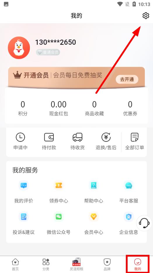 1、打開愛租機app點擊底部導航欄中的我的圖標,在該頁面右上角找到設(shè)置齒并點擊。