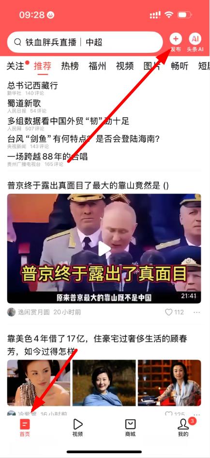 2、在首頁(yè)右上角點(diǎn)擊發(fā)布按鈕。