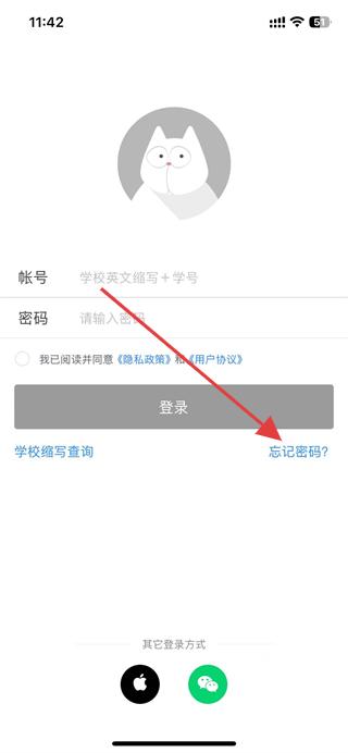 1、打開FIF口語訓(xùn)練app,在登錄頁面點擊忘記密碼?選項。
