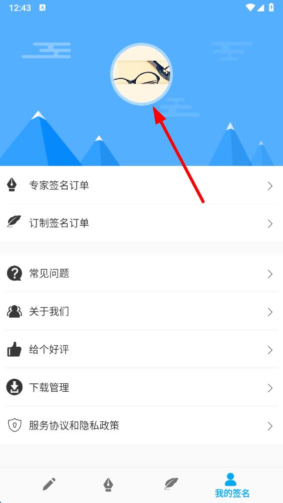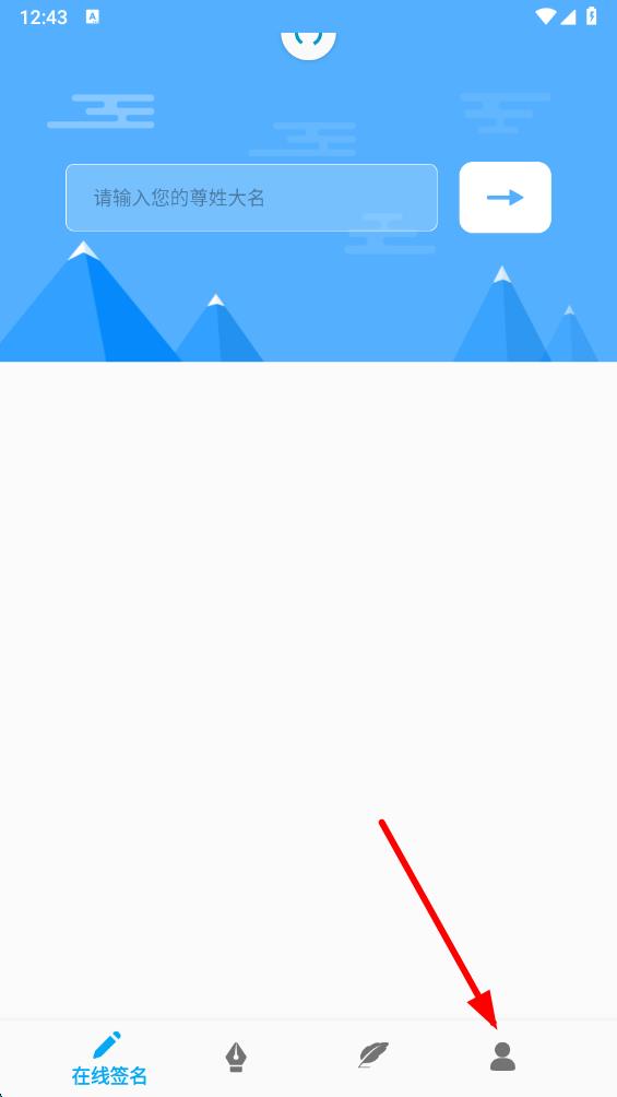1、打開藝術簽名app,點擊底部導航欄最右側的我的簽名圖標,進入個人相關界面。