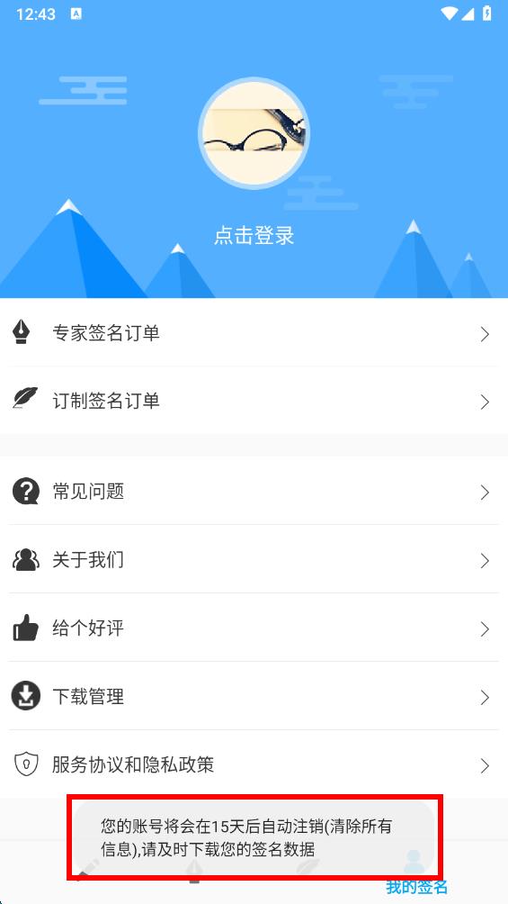 4、確認注銷操作后,賬號將會在15天后自動注銷,在此期間請及時下載您的簽名數據。