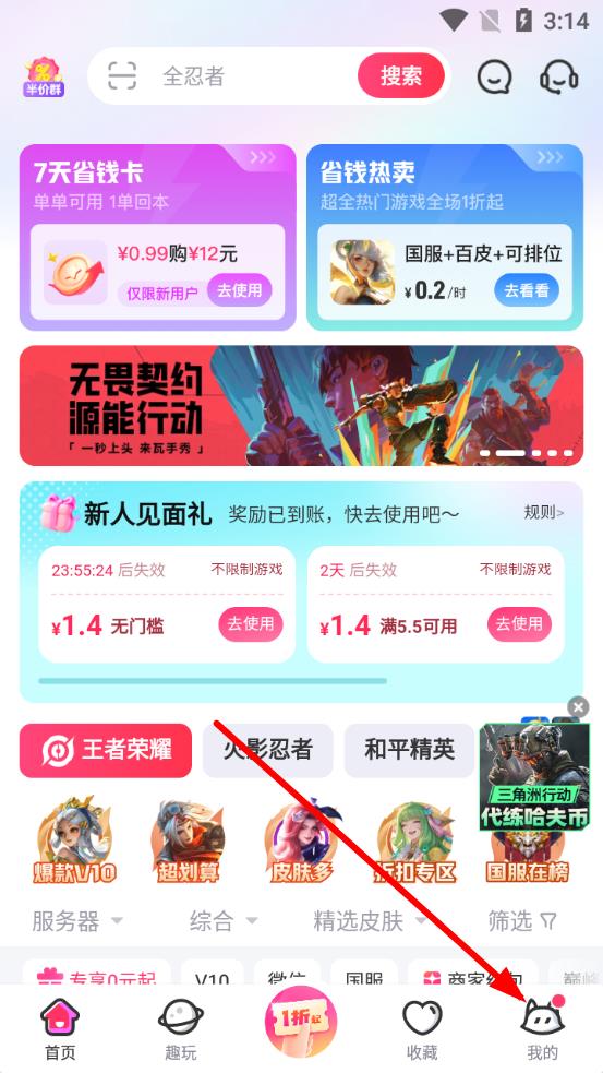 1、進(jìn)入租號(hào)玩APP首頁(yè),點(diǎn)擊底部我的按鈕,進(jìn)入個(gè)人頁(yè)面。