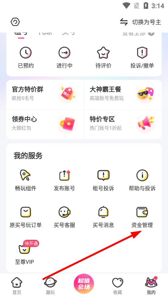 2、在個(gè)人頁(yè)面中,找到并點(diǎn)擊資金管理選項(xiàng),進(jìn)入資金管理界面。