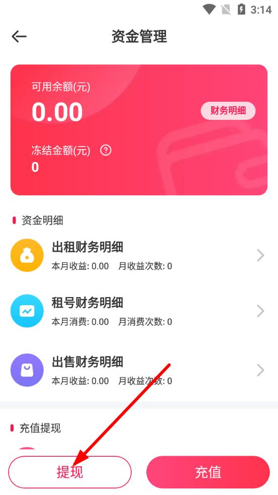 3、在資金管理界面,點(diǎn)擊下方提現(xiàn)按鈕,進(jìn)入提現(xiàn)頁(yè)面。