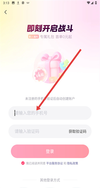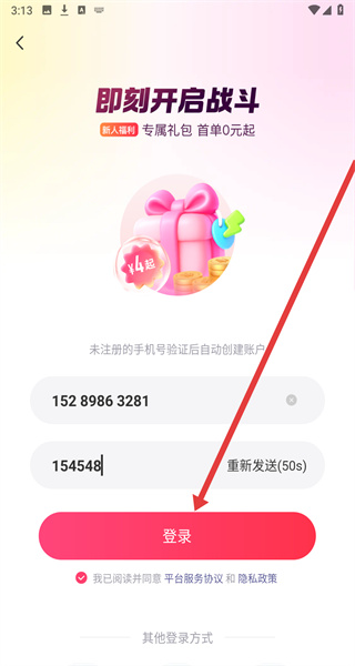 4、將收到的驗(yàn)證碼填入“請(qǐng)輸入驗(yàn)證碼”輸入框后,點(diǎn)擊登錄按鈕,完成租號(hào)玩APP的登錄流程。