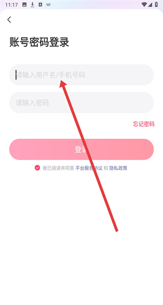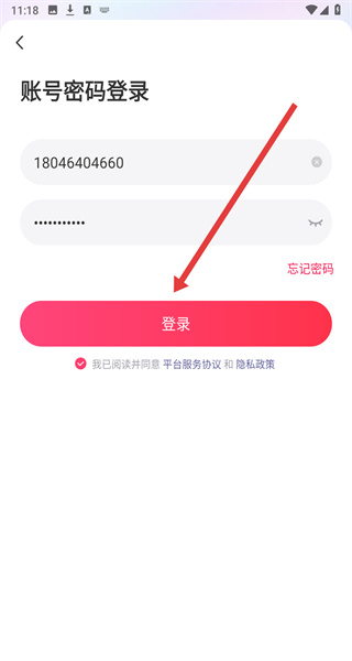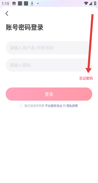 3、在進(jìn)入到賬號(hào)密碼登錄界面時(shí),若忘記了密碼可以點(diǎn)擊忘記密碼按鈕,進(jìn)行解決。