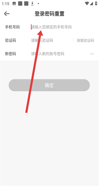 4、在進(jìn)入到登錄密碼重置頁(yè)面,填寫手機(jī)號(hào)獲取驗(yàn)證碼后,在輸入框新密碼點(diǎn)擊確定,即可完成重置。