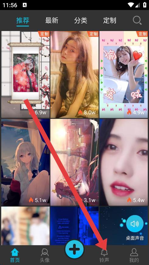 1、打開彩蛋視頻壁紙App,點擊底部導(dǎo)航欄中的鈴聲選項。
