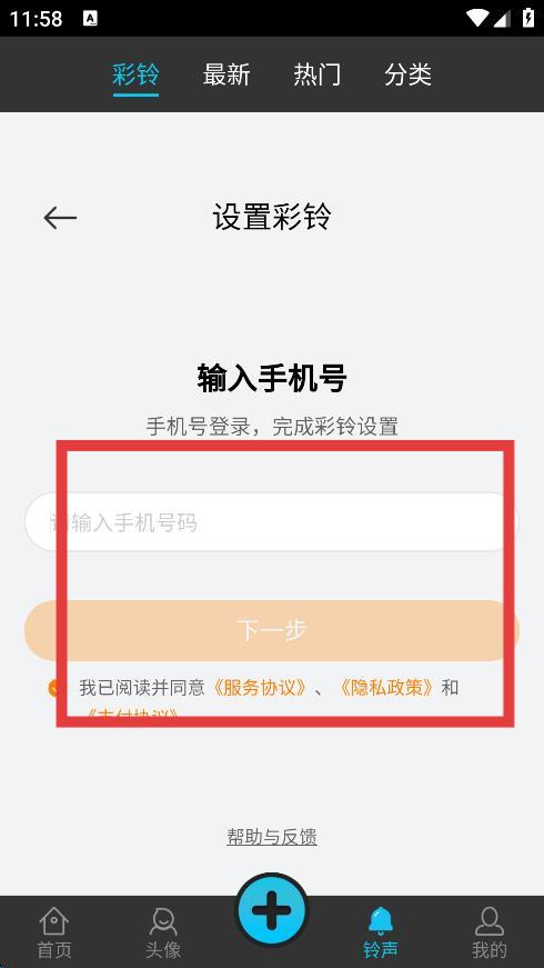 5、在彈出的設(shè)置彩鈴頁面,輸入你的手機(jī)號,即可完成鈴聲設(shè)置操作。