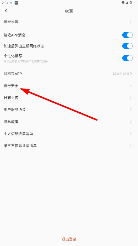 3、進入設(shè)置頁面后,點擊賬號安全選項。